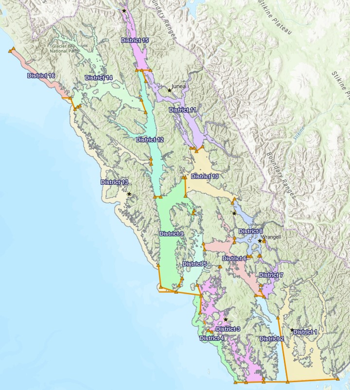 Description: <DIV STYLE="text-align:Left;"><DIV><DIV><P><SPAN>Over the past several years, the department has undergone an extensive effort to correct and provide for accurate descriptions of commercial salmon fishing districts, sections, statistical areas, and closed waters. District and section layers are delineated based on Alaska Fish and Game Laws and Regulations as described in 5 AAC 33.200. Statistical areas are not defined in regulation, but internally defined within ADF&G. Statistical areas included in the commercial fishing districts and sections in Southeast Alaska are used for salmon, shellfish, and miscellaneous shellfish fisheries for reporting harvest within Southeast Alaska. </SPAN></P><P><SPAN>Districts are polygons that divide the waters of the State of Alaska and the adjacent Exclusive Economic Zone (EEZ) into small units for the purpose of reporting and analyzing fishery harvest. Districts are the largest unit within the overall registration areas followed by subdistricts, sections. and statistical areas. Subdistricts and sections are not applicable to all salmon registration areas. Salmon districts are divided by points/lines defined in ADF&G regulations</SPAN></P><P><SPAN>This data set contains current commercial fishing salmon districts in Southeast Alaska. Each area has a geometry start date attribute which ranges in this dataset for Southeast Alaska from 1963 to 1980. Over the years, there have been changes to district boundaries changing the district polygon area/shape. The geometry start date coincides with changes in district boundaries. Depending on the timeframe of interest, users should be aware the district polygons may not correspond with the date of inquiry, but may have been used historically and exist in another GIS file version. </SPAN></P><P><SPAN>All regulatory lines were originally referenced to the WGS84 datum in this feature class.</SPAN></P><P><SPAN>This data set should NOT be used for navigation or for determining compliance with ADF&G Commercial Fishing Regulations. Please consult the ADF&G Salmon Commercial Fisheries Regulations for the official definitions of regulatory boundaries.</SPAN></P><P STYLE="margin:0 0 0 0;"><SPAN>Data last updated June 2023</SPAN></P></DIV></DIV></DIV>